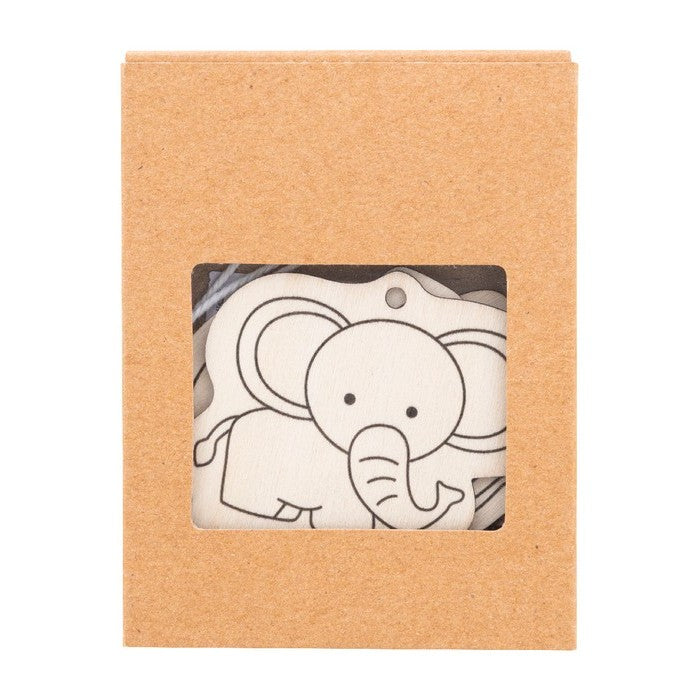 Set de colorat, cu 3 figurine cu animale, din lemn, inclusiv 4 creioane colorate din lemn si snururi de agatat. in Cutie de hartie kraft., material: lemn, dimensiune: 94×122×14 mm