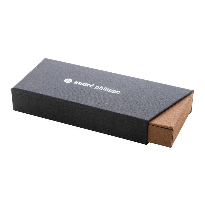 Set elegant de pix si roller din metal, cu corp din lemn si detalii metalice stralucitoare. in Cutie cadou in doua culori, cu mina albastra. Produs marca André Philippe., material: lemn+lemn, dimensiune: 180×75×30 mm