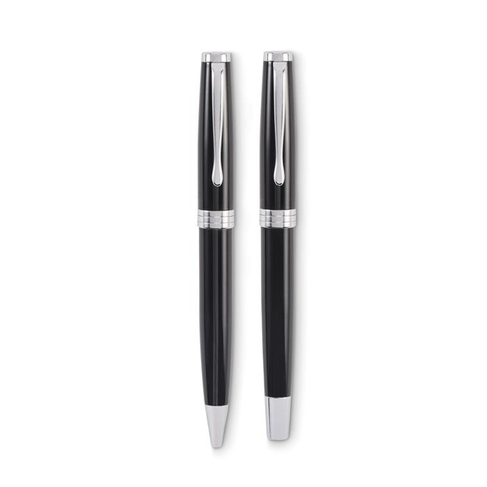 Set instrumente de scris::pix twist si roller din otel inoxidabil reciclat. Scriere albastra si, respectiv, neagra. Prezentat in cutie neagra, dimensiune: 17,2 x 5,2 x 2,2 cm, material: otel inoxidabil reciclat