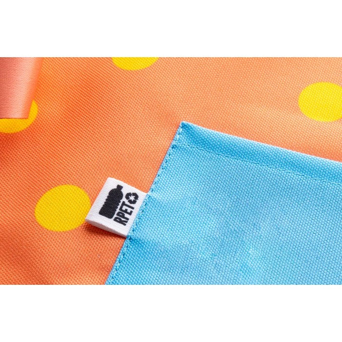 sort bistro personalizat, din poliester 600D RPET, cu buzunar frontal triplu, grafica imprimata prin sublimare pe toata suprafata si eticheta distinctiva RPET. MOQ: 25 buc., material: 600D poliester reciclat, dimensiune: 900×400 mm
