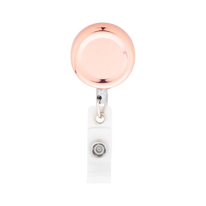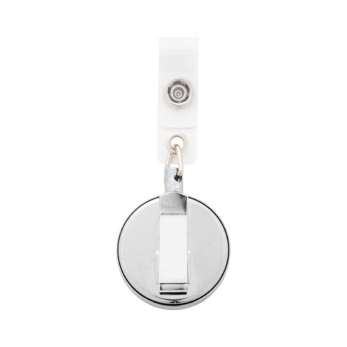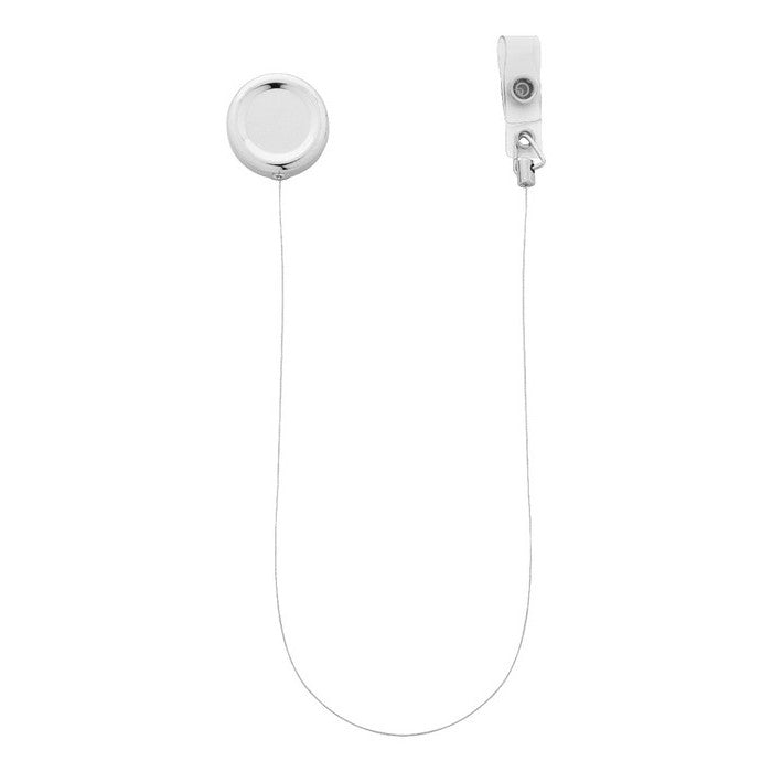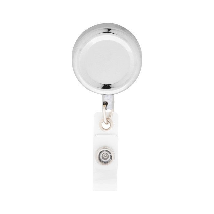 Suport metalic pentru insigna, cu finisaj metalic lucios. cu inchidere cu capsa, fir telescopic si clema metalica., dimensiune: ø30×10 mm