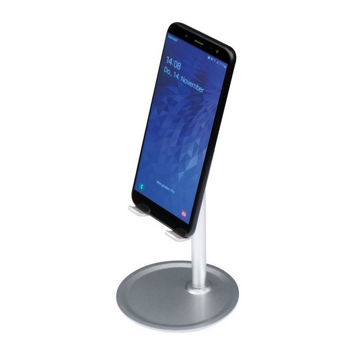 Suport pentru telefon mobil din plastic cu baza antialunecare si cap rotativ, care este prevazut la fel si cu o suprafata antiderapanta. Personalizare recomandata prin tampografie, dimensiune: ø 9,8cm × 15,7cm, greutate: 0.11kg, tara de origine: CN
