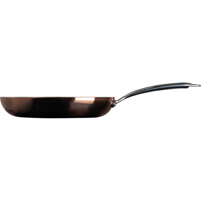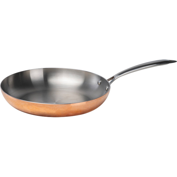 Tigaie din otel inoxidabil cu acoperire de cupru. Potrivita pentru plite electrice, pe gaz si cu inductie. Acoperirea de cupru garanteaza cea mai buna conductivitate termica si capacitate de pastrare a caldurii., dimensiune: ø 28,5 x 7 cm