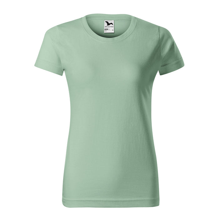 material: 160 g/mp, Single Jersey, 100 % bumbac (compozitia culorii poate sa fie diferita - culoarea 03 - 97 % bumbac, 3 % viscoza, culoarea 12 – 85 % bumbac si 15 % vascoza), finisaj cu silicon. Marimi: XS - 2XL.. Croiala cambrata ce prezinta cusaturi laterale, tivul ingust al gulerului este confectionat din material raiat 1:1, cu adaos de 5 % elastan, interiorul gulerului prezinta banda de intarire din acelasi material de baza, la nivelul umerilor este aplicata o cusatura de intarire, finisaj cu silicon. Modelul corespondent barbatesc are codul 129 colored si cel de copii are codul 138 colored