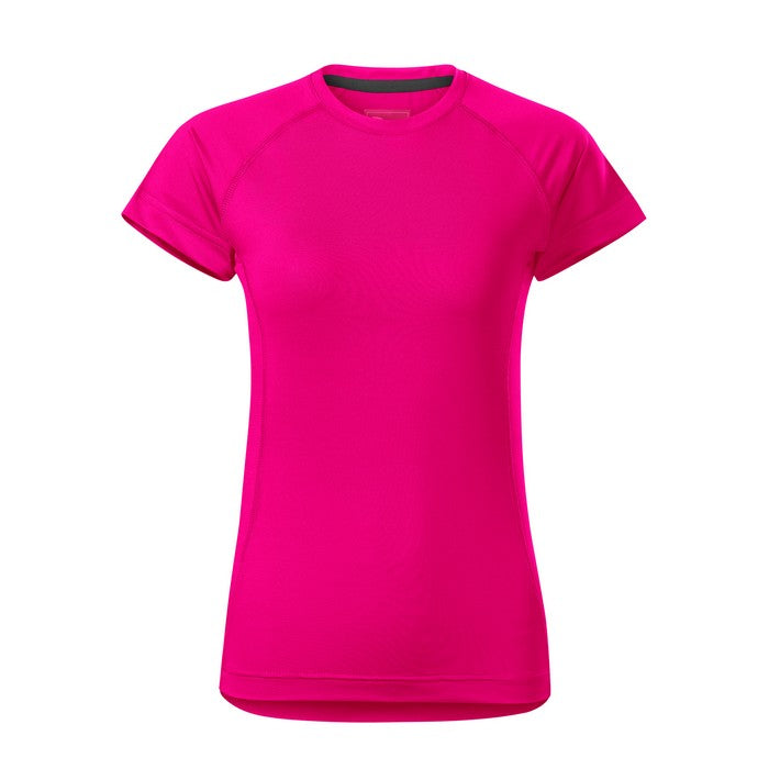 material: 160 g/mp, Single Jersey, 95 % micropoliester, 5 % elastan, marimi: XS - 2XL, material elastic neted cu capacitate de uscare rapida, croiala "slim fit" ce prezinta cusaturi laterale, cusaturi decorative plate, tivul ingust al gulerului este confectionat din acelasi material de baza, interiorul gulerului prezinta banda de intarire pe spate in culoare contrastanta, maneci scurte de tip raglan, partea din spate este curbata si putin alungita, ideal pentru activitati sportive si cele desfasurate in timpul liber, sticker detasabil. Modelul corespondent barbatesc are codul 175 coloresd