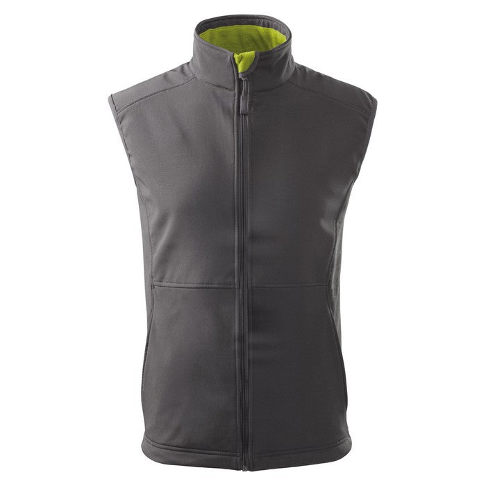material: 280 g/mp, Softshell, 94 % poliester, 6 % elastan, Fleece, 100 % poliester. Marimi S - 3XL. Vesta softshell de barbati, doua buzunare frontale cu fermoar, la baza prezinta snur elastic pentru reglarea dimensiunii. Modelul corespondent de dama are codul 516 colored