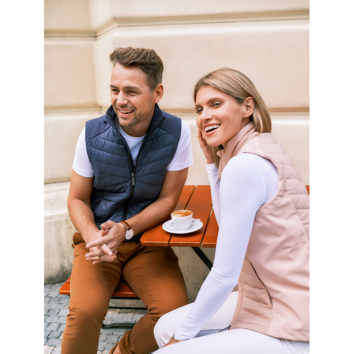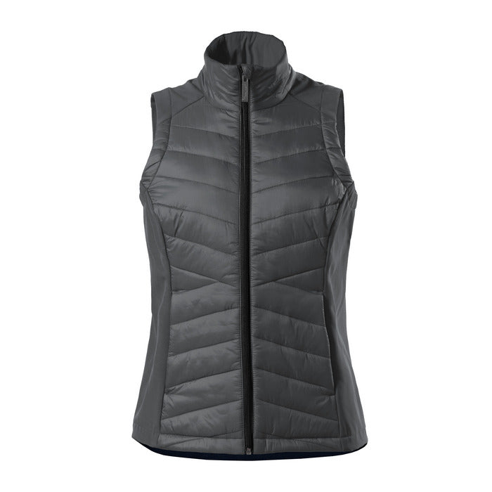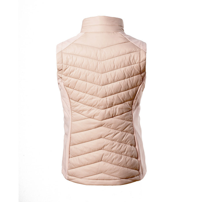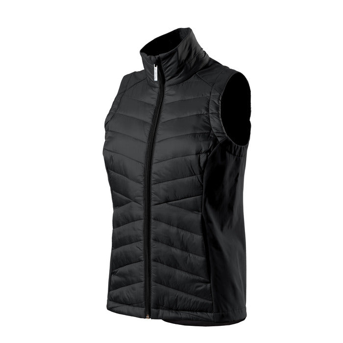 material: 100 % poliamida, tratament hidrofug, vata de umplutura: 100 % poliester, Softshell: 90 % poliester, 10 % elastan, tratament hidrofug, 250 g/m², fleece: 100 % poliester, tratament anti-scamosare. Marimi: S - 2XL. combinatie de material matlasat si softshell, croiala ce prezinta cusaturi laterale, fermoar spiralat pe toata lungimea cu protectie pentru barbie, buzunare laterale cu fermoar spiralat, buzunar aplicat pe interior la nivelul pieptului, partea din spate este curbata si putin alungita, acces in vederea personalizarii in partea din spate a captuselii. Modelul corespondent barbatesc are codul 557 colored.